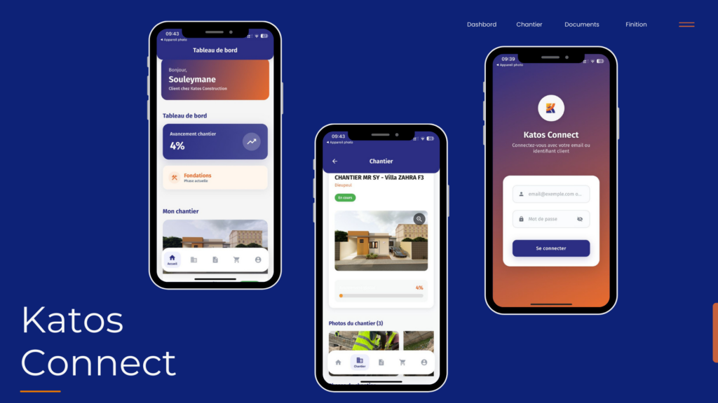 Katos Connect est une application mobile dédiée exclusivement aux clients ayant déjà adhéré à un projet de construction avec Katos Construction.